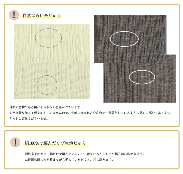 ※綿とシルクの二重編みの場合は、綿側を外にしてください。